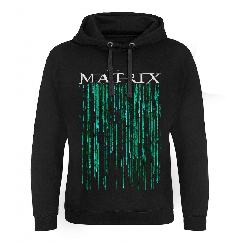 After twenty years, The Matrix continues to be celebrated for its visionary and enigmatic power, pay homage to the cult film with Keanu Reeves with this hoosie that recalls iconic cyber rain of binary code on a green background typical of 80's' computers. . Hoodie of a black cotton / polyester blend fabric, with pockets on the front. Officially licensed by Hybris.