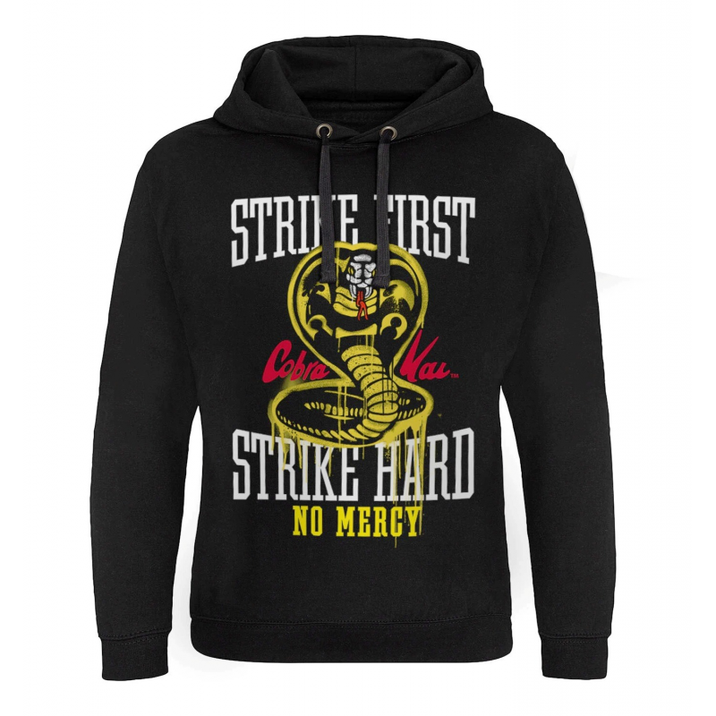 La serie tv Netflix Cobra Kai, riprende le storie degli eterni rivali Daniel Larusso e Johnny Lawrence, protagonisti del cult anni '80 Karate Kid. Non aspettare la mossa del tuo avversario e dimostra da che parte vuoi schierarti con questa felpa con cappuccio ufficiale Hybris del famigerato dojo di karate Cobra Kai! con il cobra e il credo Strike first, strike hard, no mercy.