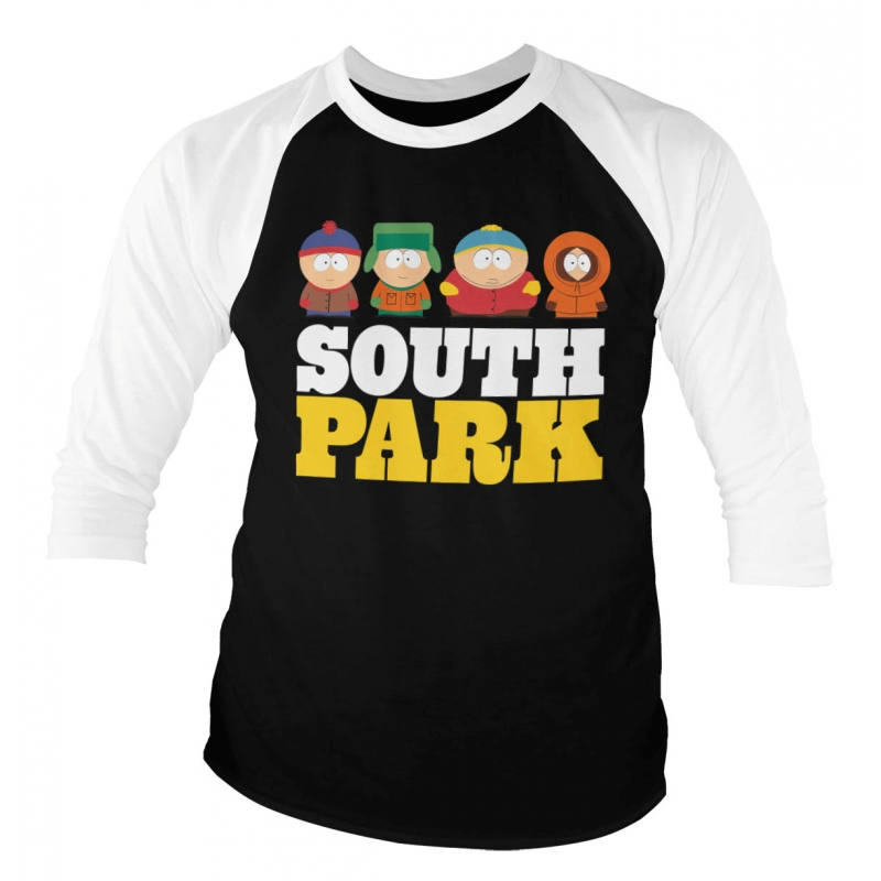 It was the most irreverent animated TV series of the end of the millennium, created by Matt Stone and Trey Parker, kept us glued all nights on TV with episodes full of satire, parodies, black humor. Now you can remember it with appreciation thanks to this long sleeve baseball t-shirt with logo of the series and its four protagonist friends Cartman, Kyle, Stan and Kenny!