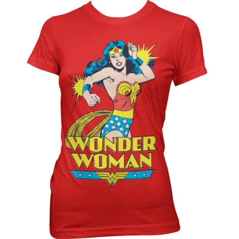Bellissima t-shirt ufficiale dell'eroina Dc Comics Wonder Woman ispirata ai vecchi fumetti. Con occhi color rosso scuro. Prodotta su licenza ufficiale da Hybris.
