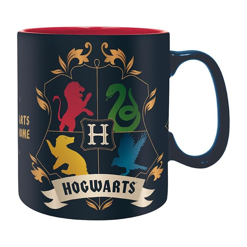 Ogni Casa di Hogwarts, Grifondoro, Serpeverde, Corvonero e Tassorosso, ha la sua nobile storia e ognuna ha prodotto maghi e streghe eccezionali. Questa splendida tazza di Harry Potter di ABYstyle li mette in mostra tutti e tre!